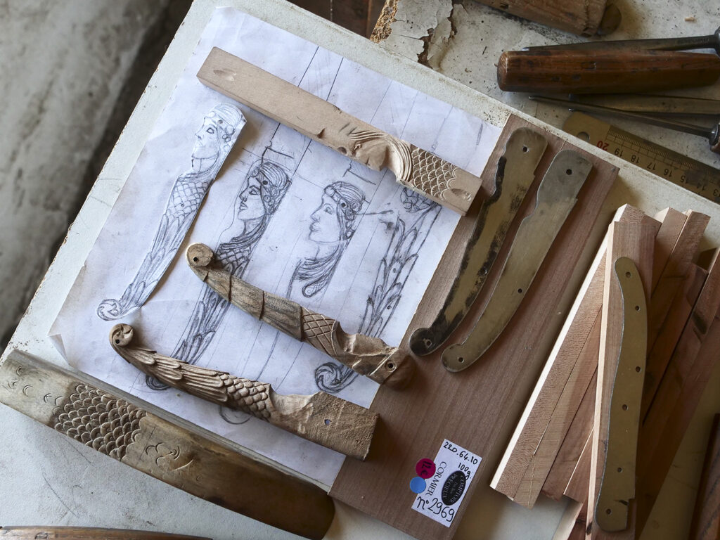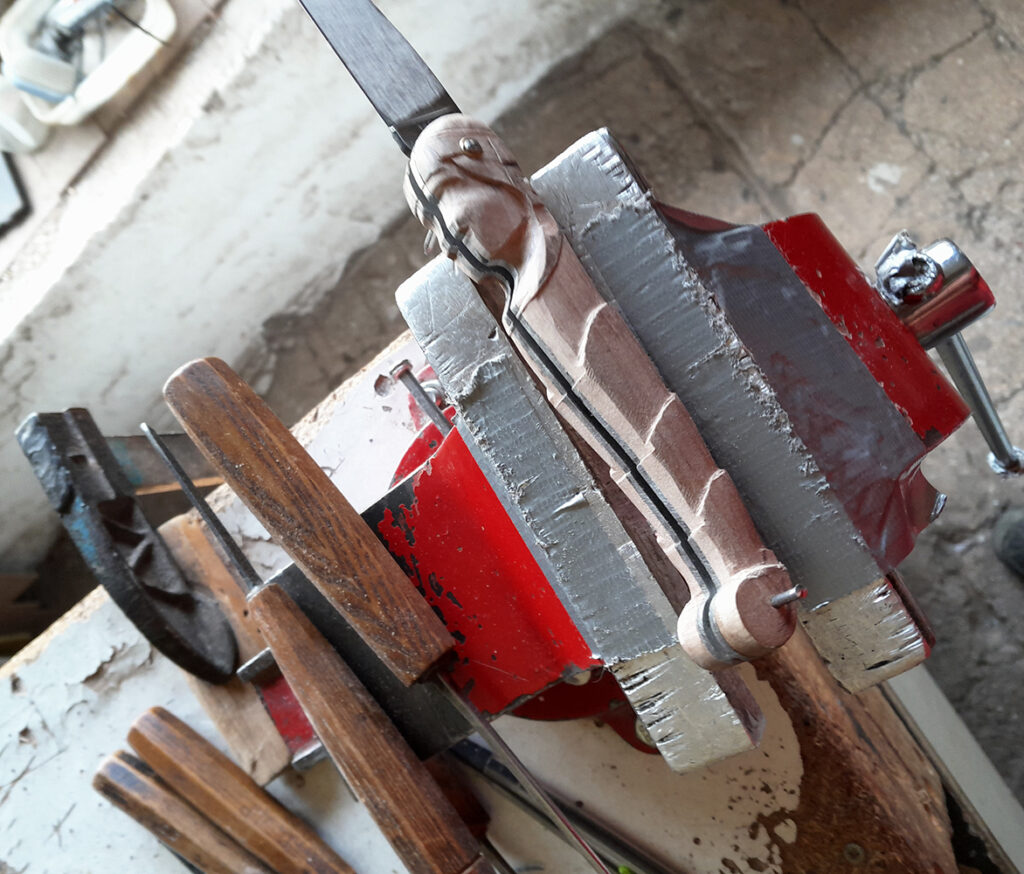 gouges de sculpteur et limes sont mes outils de prédilection. Pour un travail qualitatif la main reste le meilleur des outils amha.